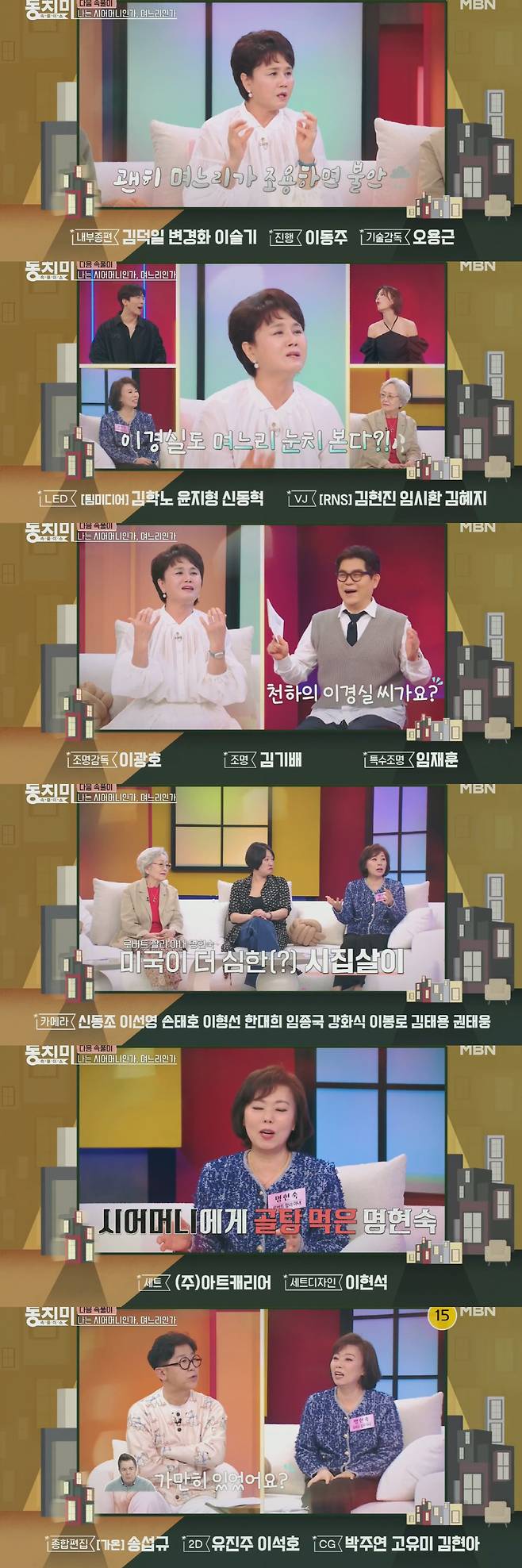 지난 10일 방송된 MBN '속풀이쇼 동치미' 말미에는 '나는 시어머니인가, 며느리인가'를 주제로 한 다음 주 예고 영상이 공개됐다.