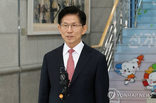 (과천=연합뉴스) 박동주 기자 = 국민의힘 김문수 대선 후보가 11일 경기도 과천 중앙선거관리위원회에서 제21대 대통령선거 후보 등록 후 취재진 질문에 답하고 있다. 2025.5.11 [공동취재]