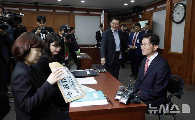 [과천=뉴시스] 권창회 기자 = 김문수 국민의힘 대선 후보가 11일 오전 경기 과천시 중앙선거관리위원회에서 제21대 대통령선거 후보 등록을 하고 있다. (공동취재) 2025.05.11. photo@newsis.com