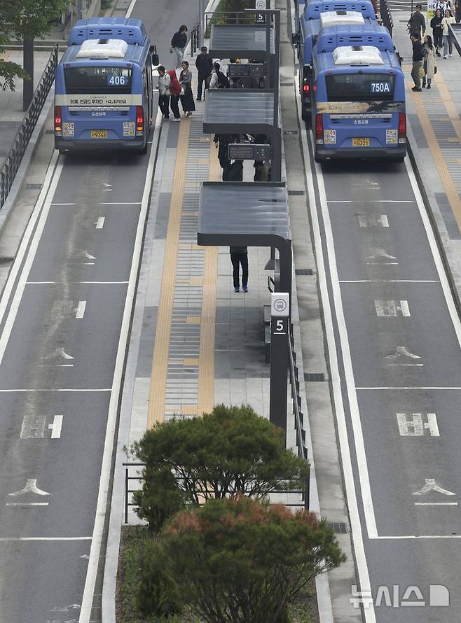 [서울=뉴시스] 최동준 기자 = 전국 버스 노조 조정신청을 하루 앞둔 11일 서울 중구 도로에 버스가 운행하고 있다. 2025.05.11. photocdj@newsis.com