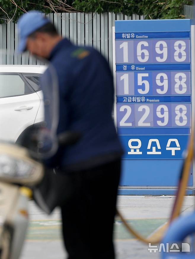 [서울=뉴시스] 김진아 기자 = 국내 주유소 주간 휘발유 평균 가격이 13주 만에 상승 전환했다. 10일 한국석유공사 유가정보시스템 오피넷에 따르면 5월 첫째 주(4∼8일) 전국 주유소 휘발유 평균 판매가는 리터당 1639.8원으로 전주대비 4.3원 상승했다. 경유 평균 판매가격도 리터당 1506.6원으로 전주대비 4.2원 오른 것으로 나타났다. 사진은 11일 서울 시내 주유소. 2025.05.11. bluesoda@newsis.com
