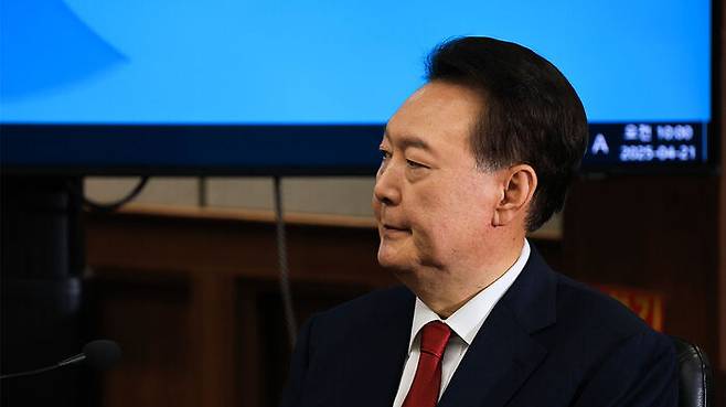 ▲ 윤석열 전 대통령이 21일 서울 서초구 서울중앙지법에서 열린 내란 우두머리 혐의 형사재판 2차 공판에 출석해 있다.