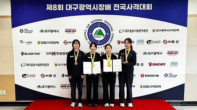 울진군청 사격팀이 10m 공기소총 여자 일반부 단체전에서 한국 신기록을 수립했습니다.