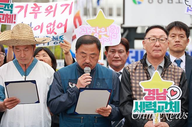 이병하 경남진보연합 대표는 "광장시민들의 뜻을 안고 내란세력청산하고 사회대개혁을 이루기 위해 민주진보의 대통령후보 이재명 당선을 위해 경남광장대선시면연대라는 조직으로 대선 승리를 위한 대장정의 길을 나선다"라고 했다.
