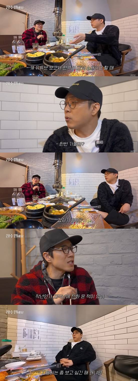 이어 은지원은 "말 나온 김에 지용이에게도 가 봐라. 밥 장사 하더라. 거기 가서 먹어라"라며 "갑자기냐. 우리는 뭐 맨날 연락하고 만났냐"고 고지용을 언급했다.