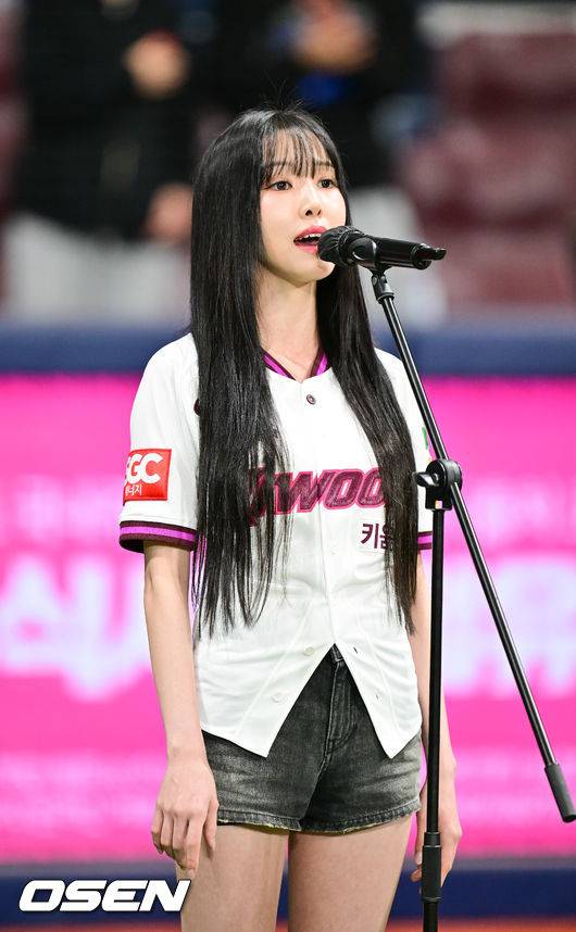 경기 앞서 여자친구 유주가 애국가를 제창하고 있다. 2025.05.11 / soul1014@osen.co.kr