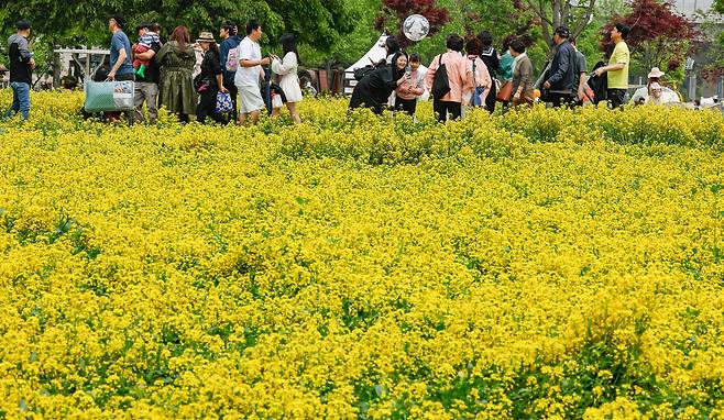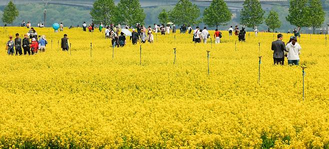 한강공원 뒤덮은 노란 유채꽃 [한강로 사진관]