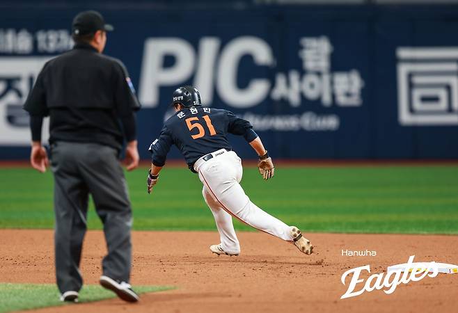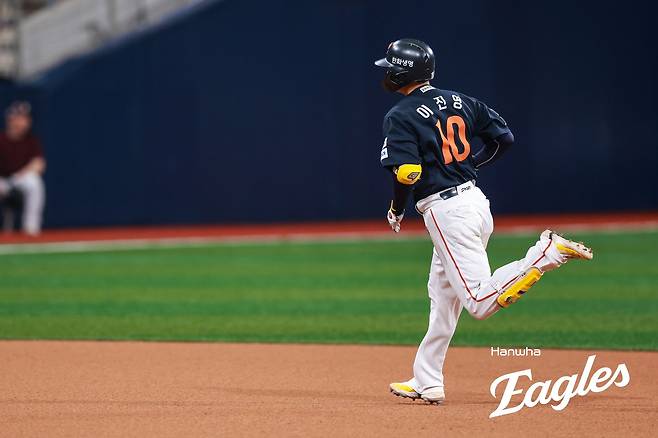 6회초에는 2점을 더 추가했다. 키움 마운드에는 여전히 김윤하. 이진영은 볼카운트 1-1에서 김윤하의 3구 122km/h 커브를 받아쳐 가운데 담장을 훌쩍 넘어가는 비거리 130m 대형 솔로 홈런을 터뜨렸다. 이진영의 시즌 4호 홈런. 이후 이원석의 볼넷과 이재원, 이도윤의 연속 안타로 한 점을 더 달아나 한화가 5-0을 만들었다.