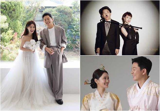 또한 새하얀 웨딩드레스와 검정 드레스, 한복 등 다양한 스타일의 착장도 선보였다. 두 사람은 행복한 미소로 결혼에 대한 설렘을 드러냈다.