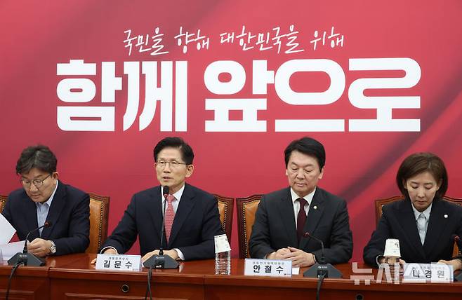 [서울=뉴시스] 고승민 기자 = 김문수 국민의힘 대선 후보가 11일 서울 여의도 국회에서 열린 중앙선거대책위원회의에서 발언하고 있다. 2025.05.11. kkssmm99@newsis.com