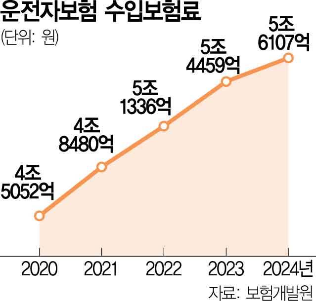 업계에서는 지금과 같은 상황을 방치할 경우 불필요한 비용이 늘어나 운전자보험료만 오르게 될 것으로 보고 있다. 보험개발원에 따르면 지난해 국내 보험사들의 운전자보험 수입 보험료는 5조 6107억 원으로 전년보다 3% 늘어났다. 5년 전인 2020년(4조 5052억 원)과 비교하면 24.5% 증가한 액수다. 운전자보험은 지난해 가입 건수만 약 418만 건으로, 국민들의 생활과 밀접한 보험이다. 손보 업계의 한 고위 관계자는 “운전자보험 변호사비 청구와 관련해 보장 한도를 최대치로 채우는 경우가 적지 않아 우려하고 있다”며 “운전자보험 보험료나 손해율에도 영향을 끼칠 수 있어 모니터링하고 있다”고 전했다.