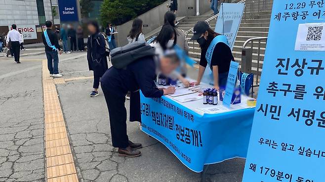 제주항공 참사 유가족들, 서울역서 진상규명 촉구 서명운동