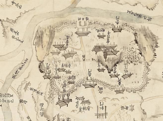 옛 지도에 공산성 남문 아래 홍살문이 뚜렷하다. 조선 말기까지 이 산성을 어찌 취급했는지 짐작할 수 있는 대목이다. 1500년간 천혜의 방어기지였던 셈이다.