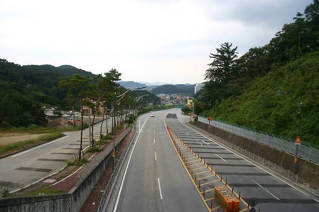 | ▲ 우금티 우금티를 관통하는 터널 위에서 공주시내 쪽으로 바라 본 모습. |