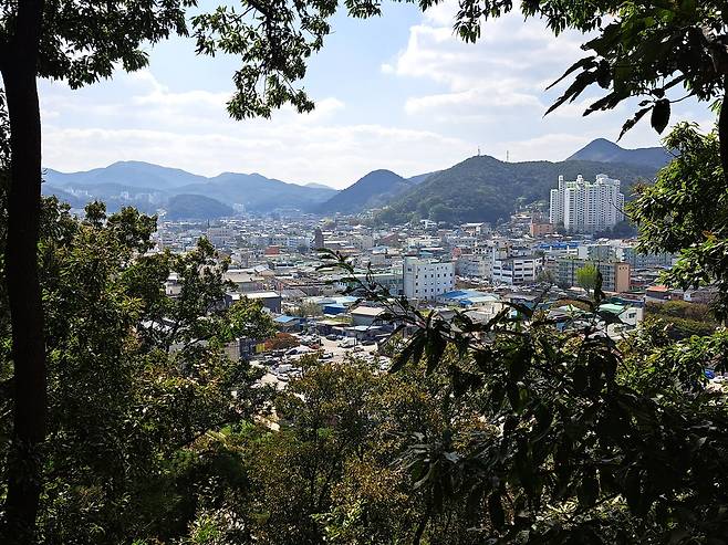 산에 갇힌 도시가 한줄기로 뻗었다. 도로와 물길이 나란하다. 이들이 절묘한 조화를 이루며 금강을 향해 함께 흐르고 달린다. 골짝마다 집과 건물이 오밀조밀하다. 좁은 공간이 높은 건물을 받아들이지 않음으로써, 역설적으로 아늑한 분위기를 연출해 냈다.