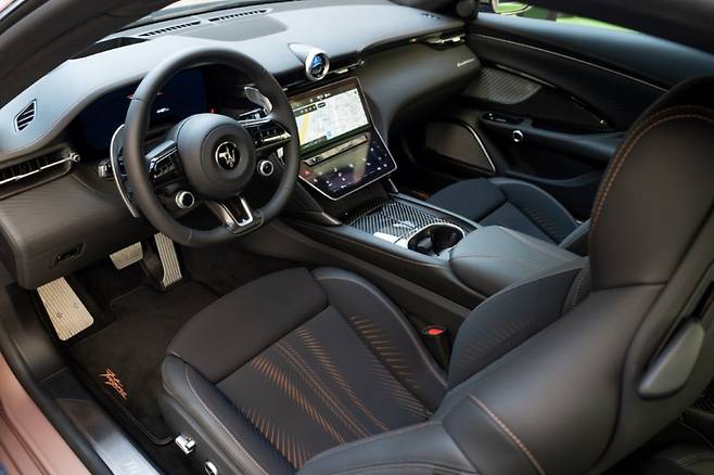 실내(사진)는 최첨단 기술과 장인정신을 결합해 ‘대조적 요소들의 균형(Balance of the Opposites)’이라는 목표를 구현했다. 고급스러운 소재들이 12.3인치 중앙 디스플레이와 8.8인치 컴포트 디스플레이, 12.2인치 디지털 대시보드, 헤드업 디스플레이, 디지털 시계, 디지털 리어뷰 미러 등과 잘 어우러진다는 인상을 받았다. 다카유키 기무라 마세라티코리아 총괄은 “그란투리스모와 그란카브리오는 마세라티의 모터스포츠 DNA와 브랜드 철학이 집약된 모델”이라며 “내연기관차와 전기차는 서로 다른 기술적 접근을 통해 완성되었지만, 모두 이탈리아의 디자인과 엔지니어링, 장인정신의 조화를 통해 마세라티가 지향하는 궁극의 럭셔리를 보여준다”고 강조했다.