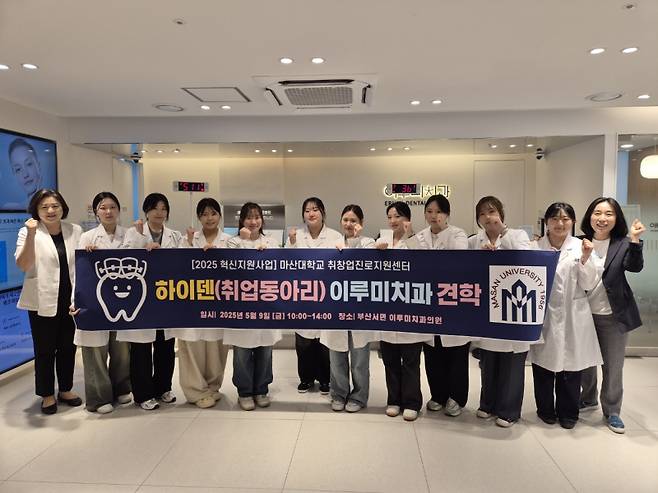 마산대학교 치위생과 취업역량강화 동아리 ‘하이덴’이 9일 부산 서면의 이루미치과의원을 방문해 디지털 치과 시스템을 직접 체험하며 실무 역량을 강화했다.