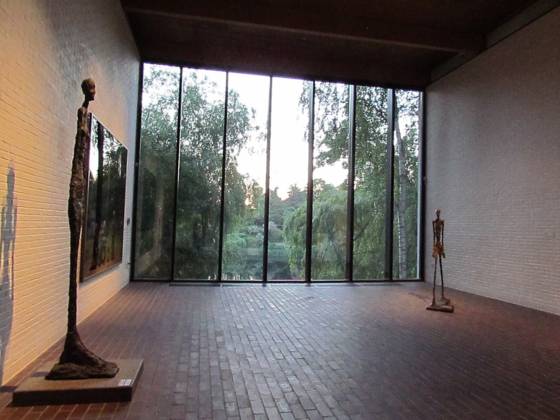 19세기 빌라를 보존해 현관으로 삼았고, 전시관은 멀리 떨어진 곳에 3동의 건물을 지그재그로 배열했다. 현관과 전시관을 잇는 긴 유리 복도는 아름다운 정원을 거니는 산책로가 되었다. 빌라의 원주인은 3명의 부인을 두었는데 이름이 모두 루이제였고, 100년 후 이를 기억해 루이지애나가 미술관 이름이 되었다. 건물을 적절히 분절해 인간적 척도를 이루고 내부 전시공간과 외부 정원이 소통해 하나가 되었다. 특히 높은 전창을 가진 자코메티홀(사진)은 작품이 자연 속으로 걸어가는 듯하다.