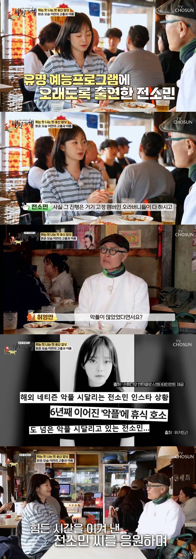 그러나 당시 악플로 고생하기도 했던 전소민은 "많은 사람에게 주목을 받을수록 어쨌든 그런 상처를 받을 일들이 많아진다. 다른 분들도 많은 악플이 있으시겠지만, 이유가 있는 악플이라면 저도 고민을 했을 텐데 제가 객관적으로 느끼기에는 이유가 별로 없었다"고 털어놨다.