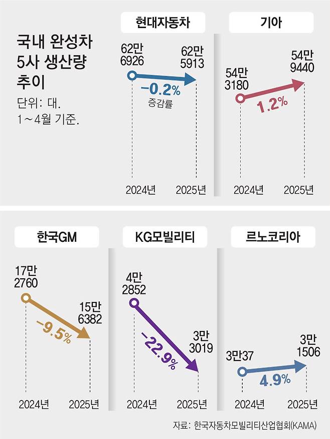 미국 관세의 영향이 완성차 업계 전반에서 가시화되는 가운데 국내 완성차 생산량이 줄어들 경우 부품업계는 올해도 실적 악화를 피하지 못할 것이란 우려가 나온다.