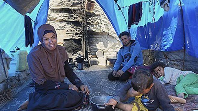 ▲ 음식을 구하지 못해 좌절한 가자지구의 부모들