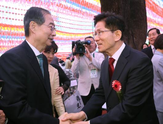 한덕수 후보와 김문수 후보가 이날 서울 종로구 조계사에서 만났다. 한 후보 측에 따르면 그는 "오늘 중으로 편한 시간에, 편한 장소에서 만나자"고 제안했고, 김 후보도 "네"라고 고개를 끄덕이며 긍정적인 반응을 보였다. 다만, 이 과정에서 김 후보는 "다시 만나자"는 덕담 외에 구체적인 대답은 없었다고 전해졌다. 이날 밤 김 후보는 당 지도부가 일방적으로 단일화를 진행하라고 요구했다며 반발했다. 국민의힘은 이날 급히 의원총회를 열어 김 후보와 한 후보의 단일화가 반드시 필요하는 데 뜻을 모았다고 밝혔다. 사진=연합뉴스