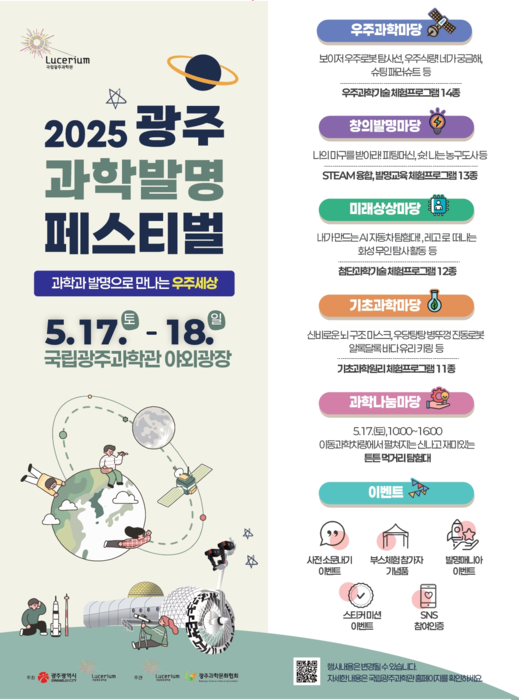 국립광주과학관(관장 이정구)에서 5월 17~18일 이틀간 '2025 광주과학발명페스티벌(이하 페스티벌)'이 열려요.
