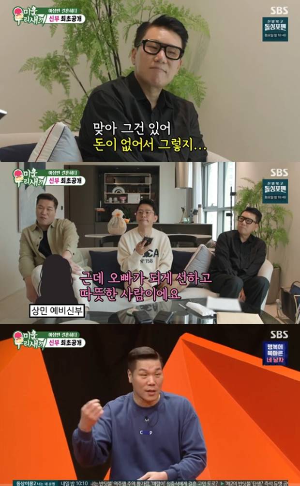 이후 이상민의 아내는 김준호, 서장훈과의 통화에서 "좋은 점이 많다. 오빠가 선하고 따뜻한 사람이다"라고 말했다. 이를 듣고 있던 서장훈은 "돈이 없어서 그렇다. 마음은 따뜻하다"라고 말해 웃음을 자아냈다.