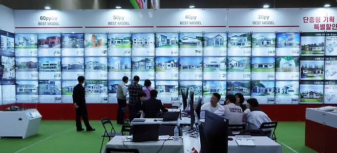 | ▲ 8일 경기도 고양시 일산 킨텍스 제1전시장에서 열린 'MBC 건축박람회'에서 관람객들이 다양한 형태의 주택 모형을 살펴보고 있다. |