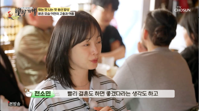 11일 오후 방송된 TV조선 교양 ‘식객 허영만의 백반기행’(이하 백반기행)에서는 배우 겸 방송인으로 활동 중인 전소민이 허영만과 함께 서울의 중심 용산으로 맛 기행을 떠났다.