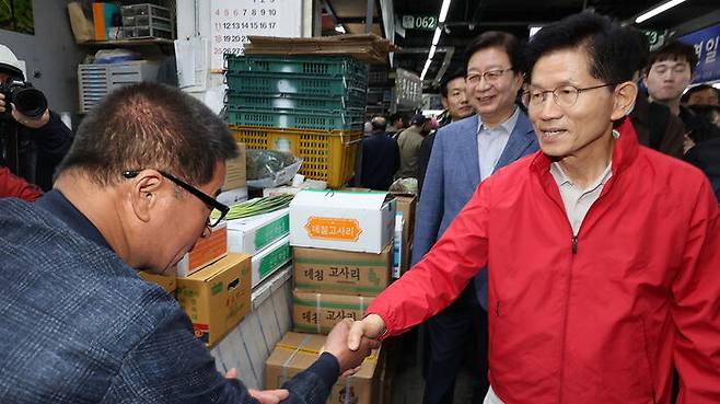 ▲ 가락시장에서 공식 선거운동 시작한 김문수
