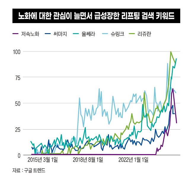이런 가격 하락과 엔데믹 이후 마스크를 벗게 되면서 시장은 폭발적으로 성장할 준비를 마쳤다. 특히 지난해 본격화된 저속노화 트렌드는 ‘시술 붐’을 자극했다.