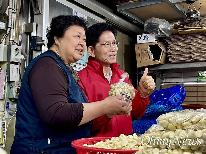 김 후보는 "대한민국 경제가 장기 구조적 침체 국면에 들어와 있다. 식당 등을 운영하는 소상공인·자영업자들이 어려움에 처해있다"며 "농사를 짓는 분, 식당을 운영하며 자재를 구입하는 소상공인분들이 만나는 곳이 가락수산물시장이다. 이곳에서 어떤 통계지표보다도 생생한 현실 만날 수 있다"고 부연했다.