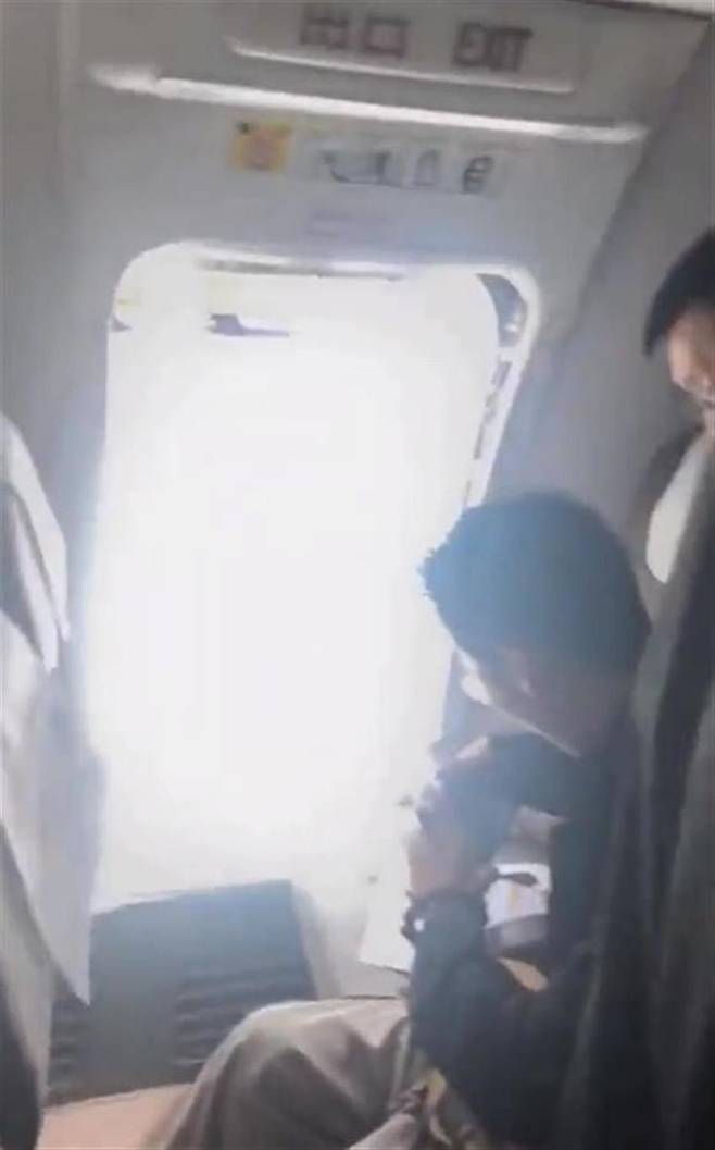 [중국 여객기서 승객이 비상구 무단 개방 (지무뉴스 캡처=연합뉴스)]