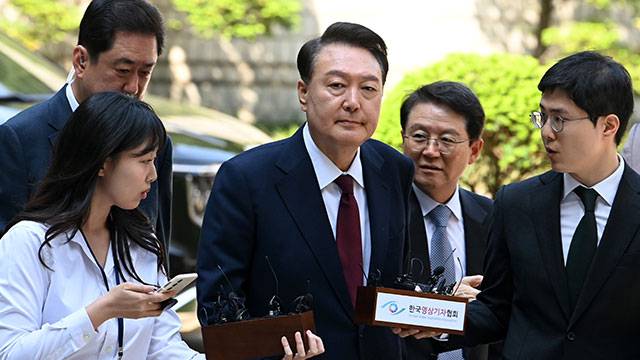윤 전 대통령은 오전 9시 54분쯤, 서관 회전문에 모습을 드러냈습니다. 윤 전 대통령은 서관 회전문 앞 취재진이 마련한, 이른바 ‘포토라인’을 통과해 서관 417호 법정으로 들어갔습니다.