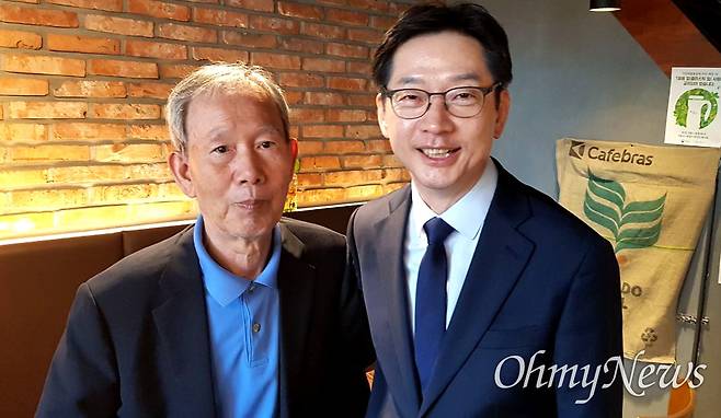 | ▲ 5월 4일 오후 진주시내 한 커피숍에서 만난 김장하 선생과 김경수 전 경남지사. |