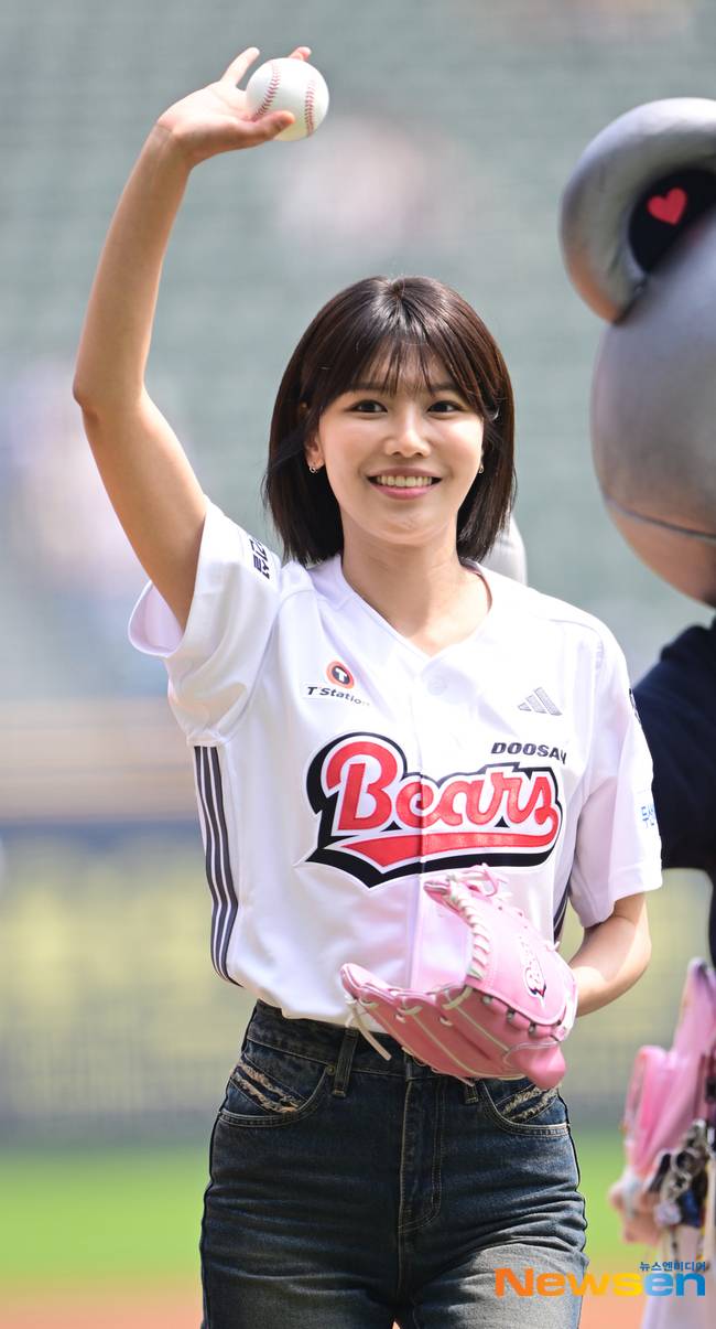 수영은 훤칠한 키를 살린 시원시원한 와인드업 포즈에 이어 정확한 시구로 관중들의 환호를 자아냈다. 수수한 단발머리에 뚜렷한 이목구비, 청량한 미모를 자랑하는 수영은 화사한 미소로 애정에 화답했다.