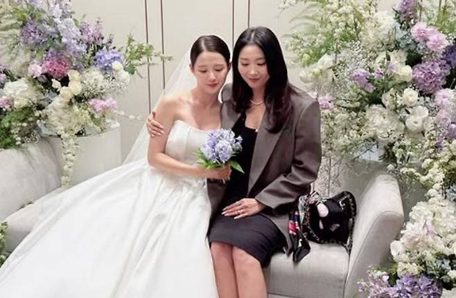 사진에는 남보라의 신부 대기실을 찾아 함께 사진을 촬영한 오윤아의 모습이 담겼다.