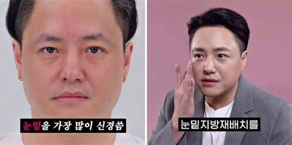 노유민이 받았다고 밝힌 눈 밑 지방 재배치 수술은 눈 밑에 불룩해진 지방을 다른 부위로 이동시켜 눈 밑을 매끈하게 하는 수술이다. 눈 밑 지방이 불룩해지는 가장 큰 원인은 노화다. 눈 위아래 눈꺼풀에는 안구를 둘러싼 세 개의 지방이 있다. 얇은 막이 이 지방들을 지탱한다. 노화가 진행되면 막이 느슨해져 아래쪽으로 처진다. 이때 지방이 아래쪽 눈꺼풀을 밀고 나오면 눈 아래가 불룩해진다. 눈 주위 피부가 탄력을 잃어 깊은 주름이 생기기도 한다. 다크서클처럼 검게 변할 수도 있다. 최근에는 수면 부족 등으로 인한 스트레스로 젊은 층에서도 흔하게 나타난다.