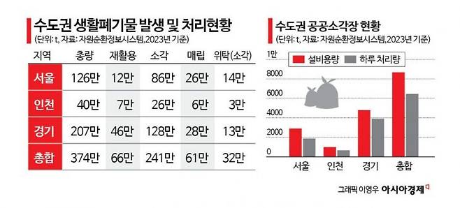 하지만 수도권 공공소각장 처리용량은 턱없이 부족하다. 수도권에서 생활폐기물 소각이 가능한 공공소각장의 설비용량은 약 8667t이다. 그런데 시설 노후화와 발열 조건 등을 따지면 공공소각장의 하루 처리량은 줄어든다. 실제 2023년 공공소각장의 하루 처리량은 6458t에 불과했다. 직매립 금지가 시행됐을 때 쏟아질 2500t의 추가 폐기물을 감당하기 어렵다.