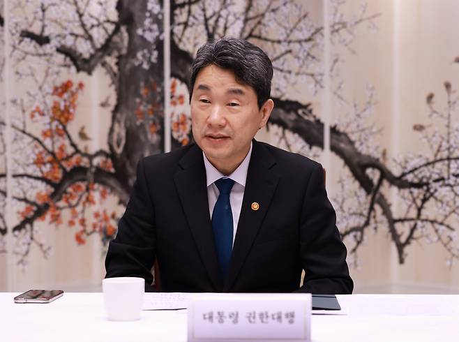이 대행은 12일 오전 정부서울청사에서 열린 경제안보전략 간담회에서 "최근 미·영 무역 합의와 여타 유사 입장국들의 대미 협의 동향을 면밀히 파악해 미국과의 협의에 만전을 기해 달라"고 당부했다.