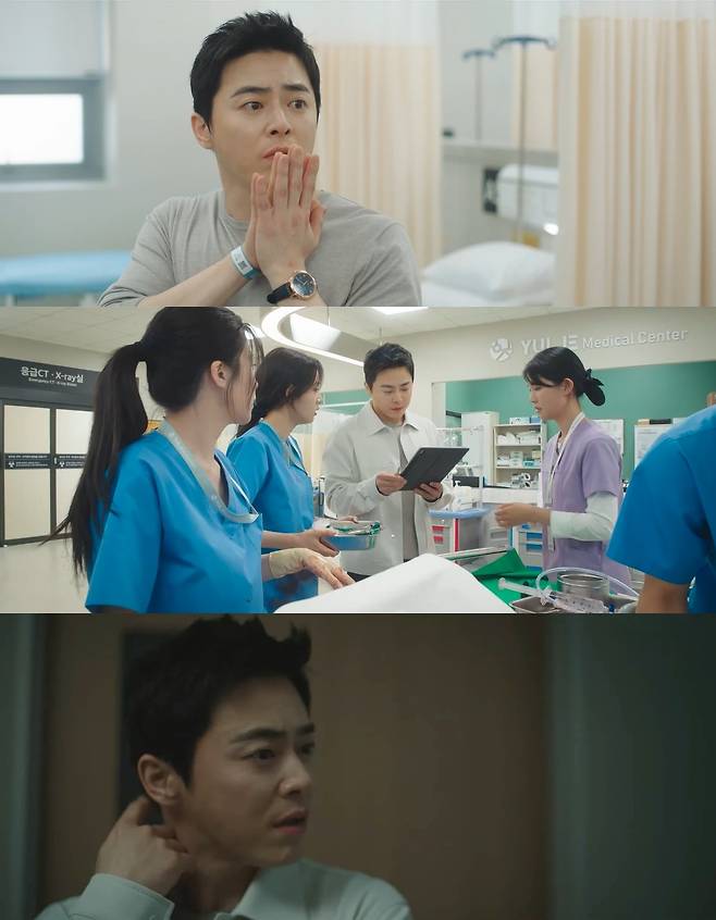이날 방송에서는 양손에 본드가 붙은 상태로 종로 율제병원 응급실에 내원한 이익준(조정석 분)의 모습이 그려져 웃음을 더했다. 본드에 양손이 붙은 게 부끄러워 율제본원이 아닌 종로 율제병원으로 향하는 등 엉뚱하고 장난스러운 매력으로 웃음을 자아낸 것.