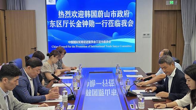 | ▲ 김종훈 동구청장 등 국외 정책연수단이 8일 오후 중국 싼야시 무역촉진회를 방문해, 관계자들과 2시간 가량 간담회를 갖고 양 지역의 상호 발전 방안을 모색했다. |