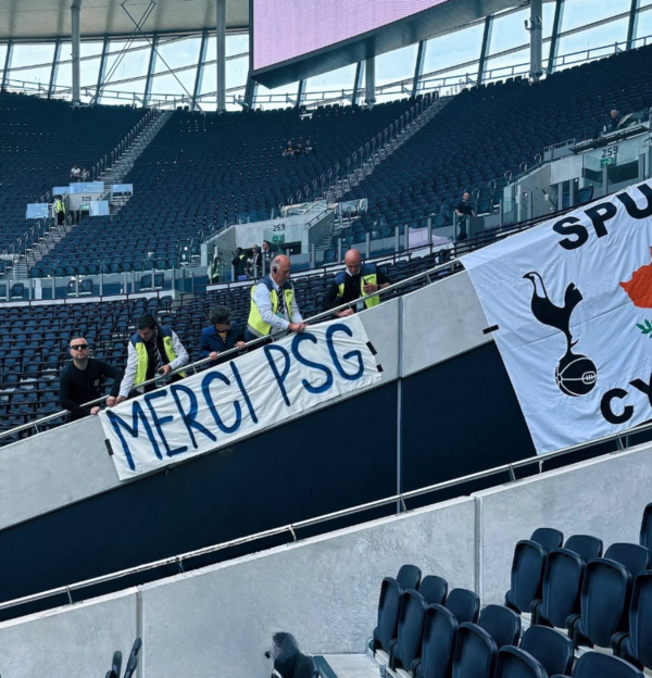 이에 토트넘 팬들은 아스널의 결승 진출을 막은 PSG에 감사함을 표시한 것이었다. 다만 이 걸개는 경기 내내 걸려있지 못했다. ‘골닷컴’은 “토트넘 안전 요원은 해당 걸개를 확인한 이후, 신속하게 반응해 걸개를 곧바로 철거했다”고 설명했다.