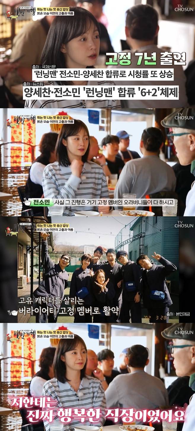 "진행을 잘했나보다"라는 허영만의 말에 전소민은 "진행은 거기 고정 멤버인 오라버니들이 다 한다. 버라이어티 프로그램이다보니 고유의 캐릭터가 있다. 그걸로 게임하고 예능 플레이를 한다. 너무 재밌었다. 저에겐 정말 행복한 직장이었다"라며 애정을 내비쳤다.