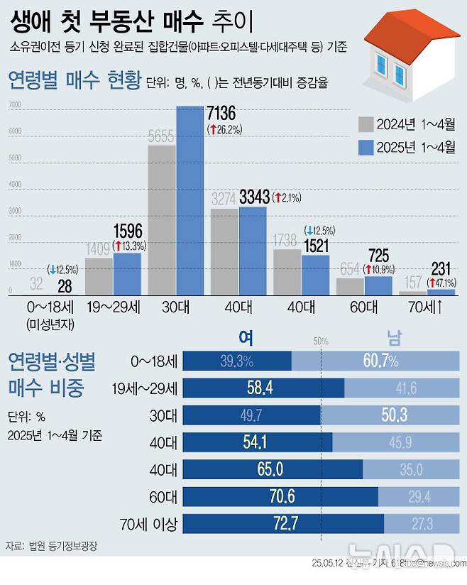 [그래픽] 2030, 생애 첫 주택 구입 증가…20대는 여성이 58.4%