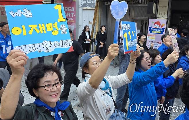 대전선대위는 이날 오전 중구 으능정이거리 이안경원 앞에서 '더불어민주당 진짜 대한민국 대전시당 선거대책위원회 선거운동 출정식'을 열고 대선 승리를 다짐했다.