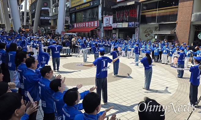 | ▲ 민주당대전시당 선거대책위원회는 12일 오전 대전 중구 으능정이 거리에서 출정식을 갖고, 본격적인 선거 운동을 시작했다. |