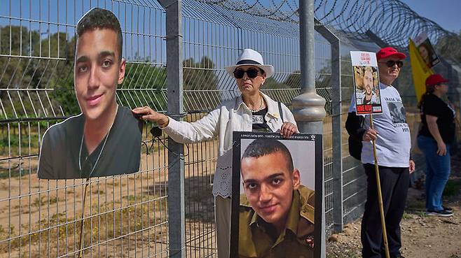 ▲ 하마스에 인질이 된 에단 알렉산더의 사진을 들고있는 조모 바르다 벤 베어럭