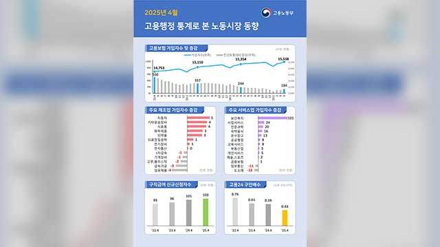 고용노동부가 오늘(12일) 발표한 ‘2025년 4월 고용행정통계로 본 노동시장 동향’을 보면, 지난달 말 기준 고용보험 상시가입자는 1,553만 8천 명으로 집계됐습니다.